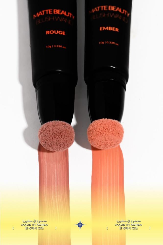 Draw a heart on your cheeks (or place small dots of the product as shown in the picture), then blend it using a brush on the cheekbones. You can add more product for a deeper color.